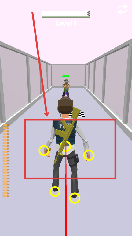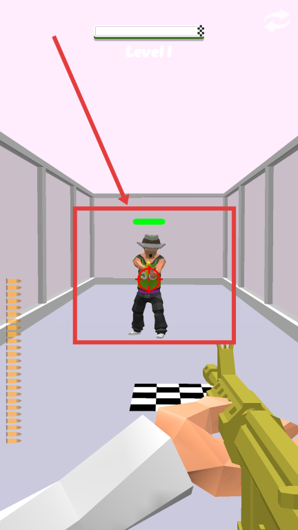 3、接近敌人后,把准星对准敌人绿色血条下方区域,点击屏幕进行射击,成功击败敌人,即可完成关卡挑战。