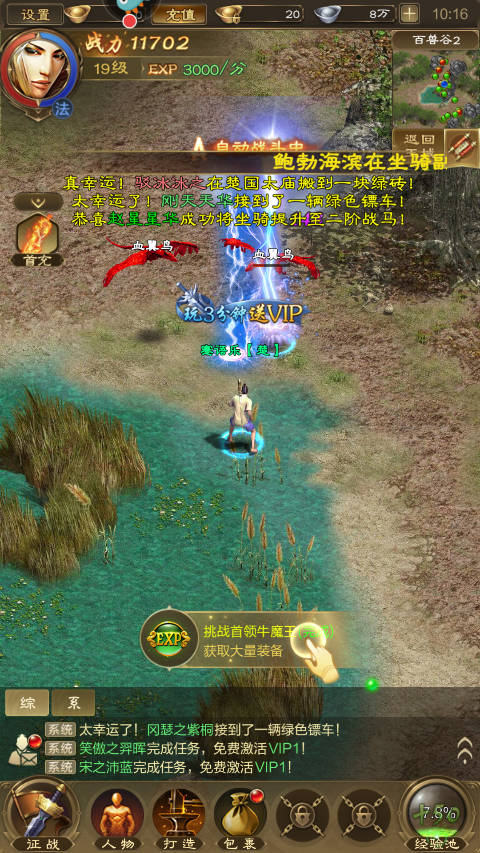 1. 玩家进入游戏,点击任务栏即可自动挂机接取任务。