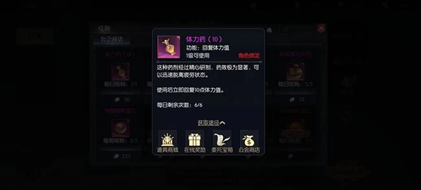 在公会商店中,每日能够用30贡献币购买一个体力药(10)。