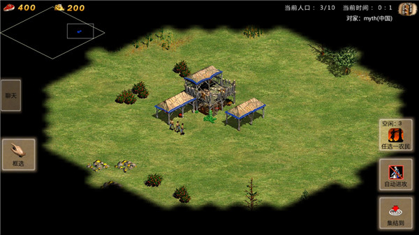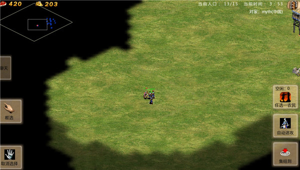 3、进入游戏后,你既能够单独选择农民,也能够点击框选按钮,选中一定范围内的农民。