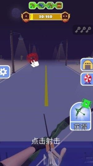 1.通过拖拽控制拉弓力度与方向,观察动态准星预判落点,松手释放箭矢射击目标。