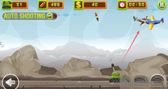 1.我们点击左右两边的按钮控制坦克移动,然后点击屏幕就可以射击了。