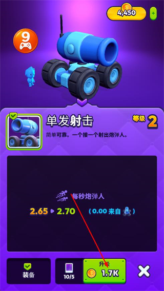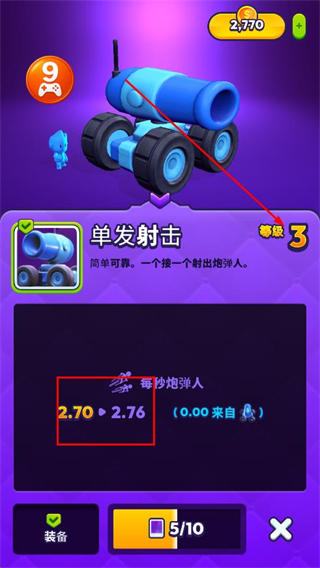 游戏支持武器升级,玩家消耗金币等资源,就能提升武器等级。武器等级提升后,炮弹人的发射速度会得到显著增强。从最初的基础属性,一步步发展到高等级时的强力表现,玩家可以充分体验从弱变强的养成乐趣。