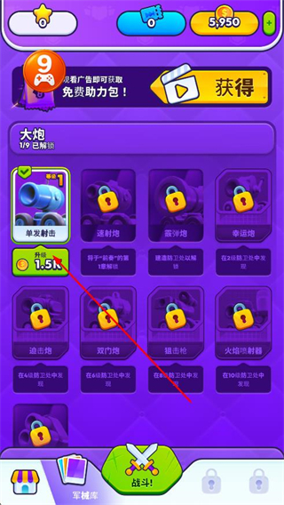 2. 在军械库的界面当中,挑选出你想要升级的大炮,然后点击它。