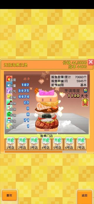 2、玩家可以解锁各式各样的汉堡,还能制作各类美味食品。