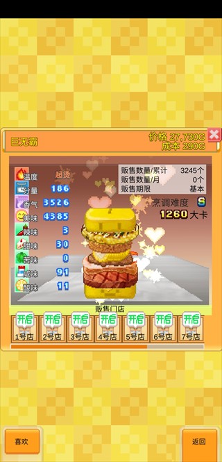 开罗创意汉堡物语最新版中文版,是一款以像素画风呈现的经营模拟类游戏。在游戏里,玩家将化身为汉堡店老板,制作各式各样的美味汉堡,以此吸引更多顾客,从而赚取海量金币。不仅如此,玩家还能自由装饰店铺,构建独属于自己的汉堡帝国。喜爱此类游戏的玩家,一定不要错过。