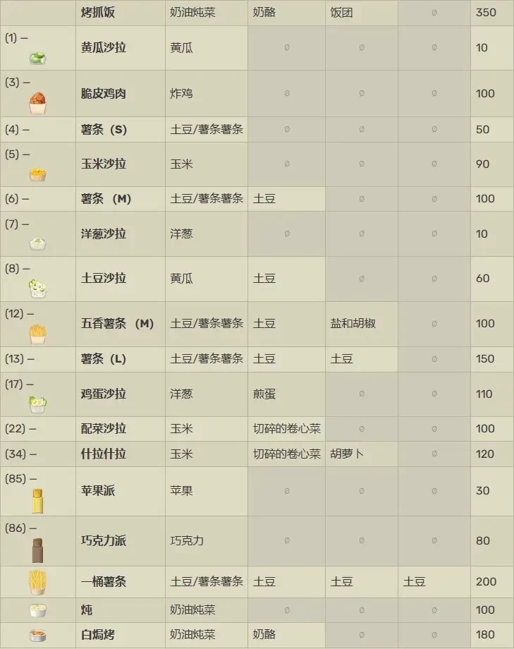 2. 制作牛排汉堡所需材料为烤牛排、小麦和西红柿,制成后可增加80份食物。