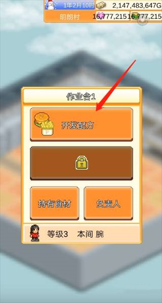 1、开启这款游戏,在作业台中找到并点击开发配方按钮,具体位置参照下图。