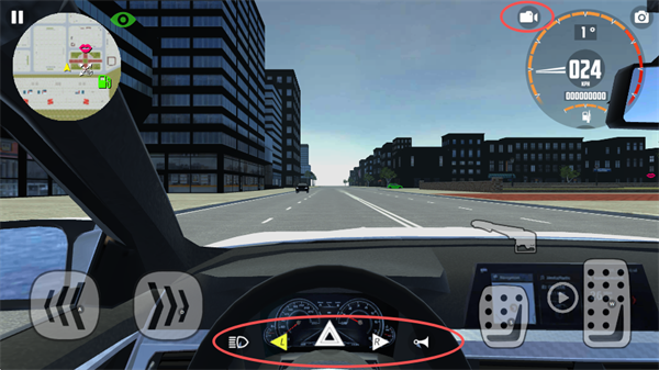 4、点击屏幕右上角的“摄像头”,即可更换视角。屏幕下方设有按键,可用于操控车辆的装置部分。