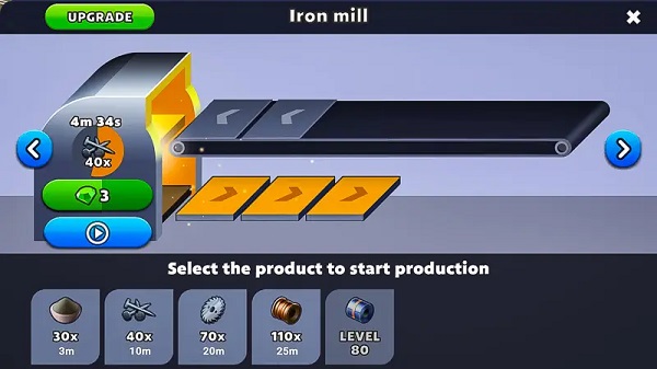 您从冶炼厂起步(利用矿石与煤炭制造钢铁)。随着等级提升,可使用的工厂数量会逐渐增多。就像锯木厂,起初仅生产木材,之后便能生产桶、胶合板以及托盘。