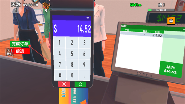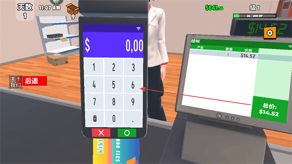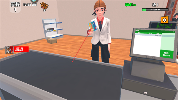1. 进入游戏后,留意屏幕上方显示的天数、时间、金钱数量以及等级信息,随后点击商品开始进行收银操作。
