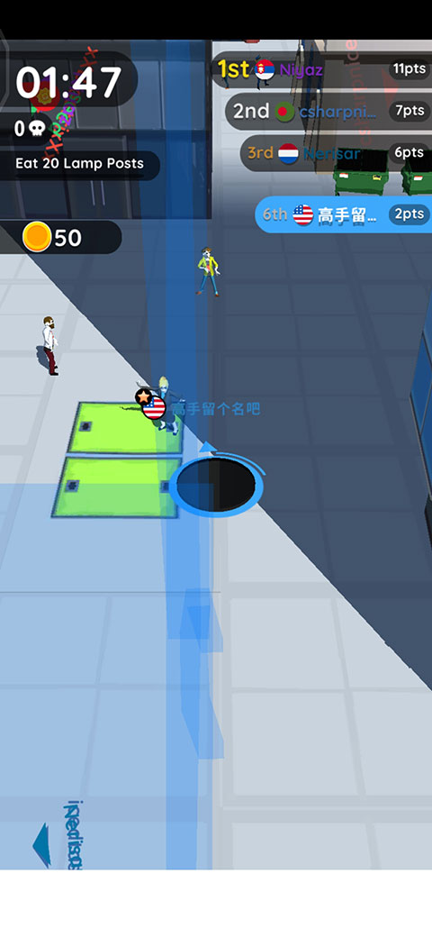 这款游戏中不存在地图,致使玩家们都处于一种仿若失明的状态。若想在游戏里迅速壮大自身,那就得前往那些鲜有人涉足的区域。小编在体验该游戏时留意到,地图边缘地带存在着诸多比黑洞小的物件,像人、路障以及下水道井盖这类东西就较为常见。各位玩家在玩这款游戏的时候不妨去这些地方瞧一瞧。