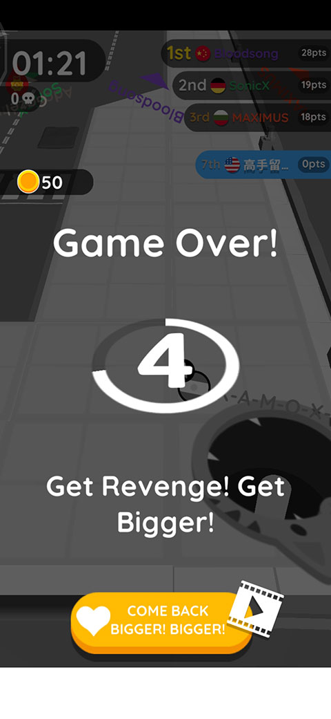 这款游戏操作起来,只需滑动屏幕就能玩。不过,不知道有没有人和小编一样,感觉它转弯不太好操控,转弯时特别费劲。小编的经验是提前转弯,不然很容易走过头。另外大家要清楚,在游戏中吞人的时候,得等上一会儿,因为只有人倒下之后才能吞掉。