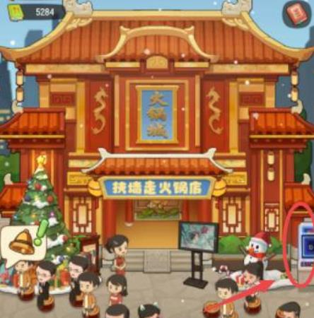 1、玩家只需在图中画圈处,也就是火锅店旁边,点击一下游戏机图标即可。
