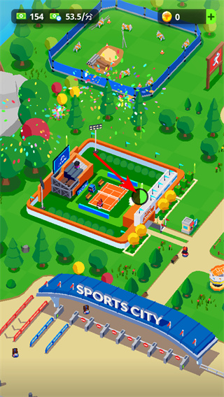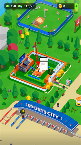 4、于运动场地,比如网球馆内,点击相应建筑就能开展建设或者升级操作。持续完善场地设施,能够吸引更多游客前来,进而提升体育城的整体收益。