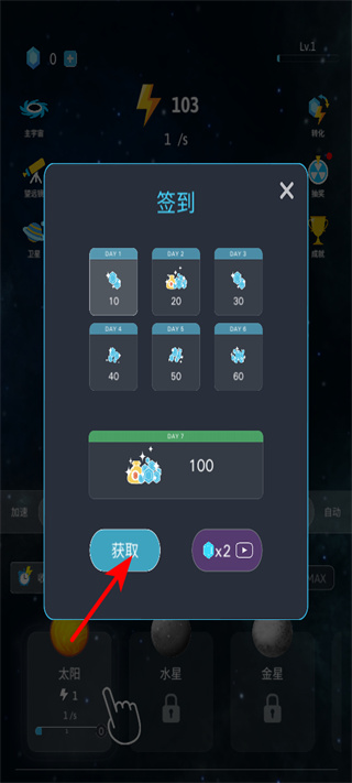 3、于签到界面,点击获取按钮,就能领取每日签到奖励,该奖励涵盖数量不等的资源,有助于开展建设。
