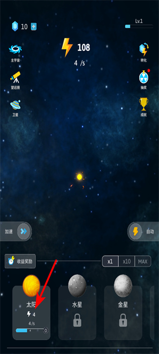 1. 轻点太阳系,就能进入太阳系的建设发展界面,在其中一步步解锁并建设太阳系内的星球,实现版图拓展。