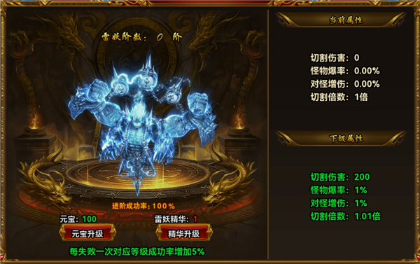 · 雷妖炼化:通过消耗雷妖精华来进行升阶操作。