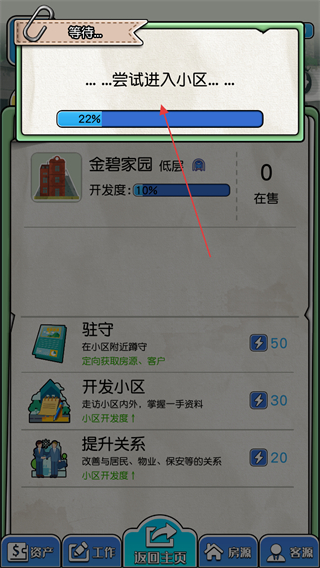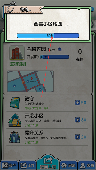 2. 等待尝试进入小区,待小区地图等进度条加载完毕,进而逐步了解小区信息。