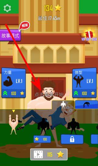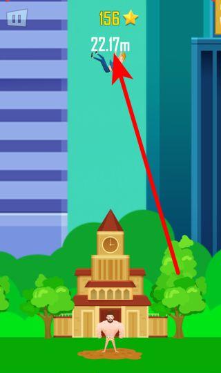1. 点击屏幕开始,大力士会把角色抛向空中。此时,你要留意抛飞的距离数值,距离越远,得分与星星奖励就越多。你可以不断尝试,争取刷新最佳纪录。