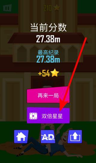 3、闯关完成后,你既可以选择再来一局继续挑战,也能够通过观看视频获取双倍星星。积攒这些星星,就能用来解锁新的大力士形象,而且不同的大力士有着不一样的抛飞风格。