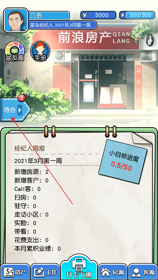 2、对“待办”事项进行查看,以此知晓本周需完成的任务,像踩盘、驻守之类。