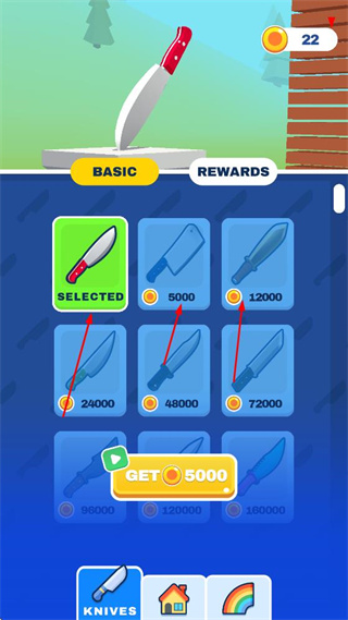 4、游戏中存在多种类型的飞刀,玩家能够进行解锁并从中挑选。解锁每一种飞刀都需要花费一定数量的金币,而且不同飞刀在投掷效果以及外观等方面,均会展现出各自的差异。