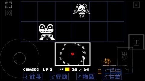 5、玩家需巧妙躲避敌人的攻击,游戏中红心代表玩家,要避开边框里出现的各类白色物体。