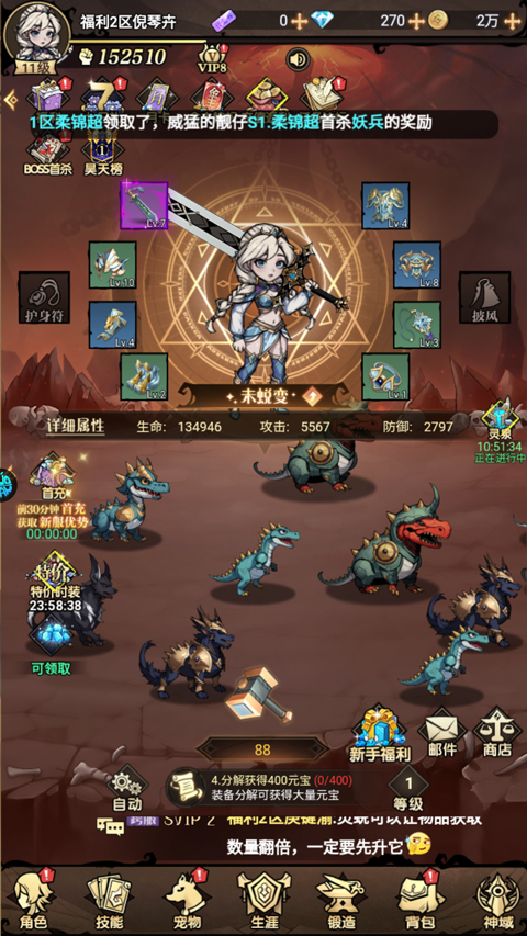 3、一经上线,立即赠送SSR时装与宠物,额外再送888元真实充值卡,开局就能嗨翻天!