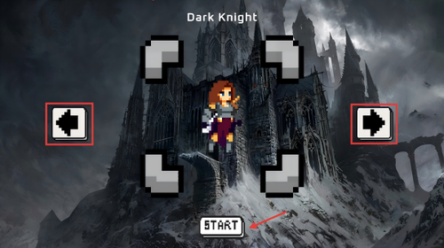 2. 如果当前角色不符合您的偏好,点击左右箭头切换查看其他职业。确认选择后,点击下方的“START”,即可正式进入地牢。