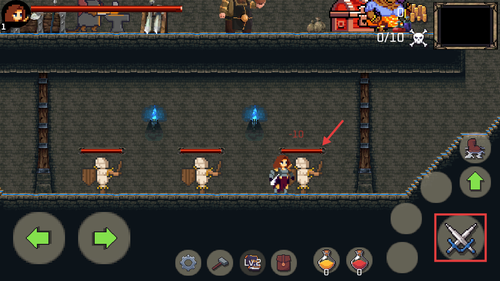 4、当遭遇弓箭手敌人时,点击右侧的攻击键发起进攻。注意掌握节奏,打出连招,从而逐步清除路径上的威胁。