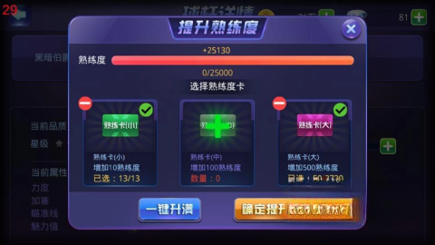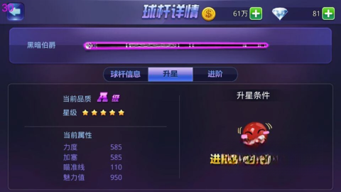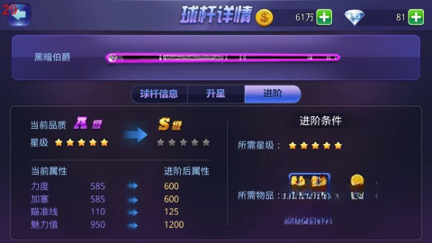进阶所需的材料有对应球杆的碎片以及金币,当准备完备后,就能着手进行进阶。