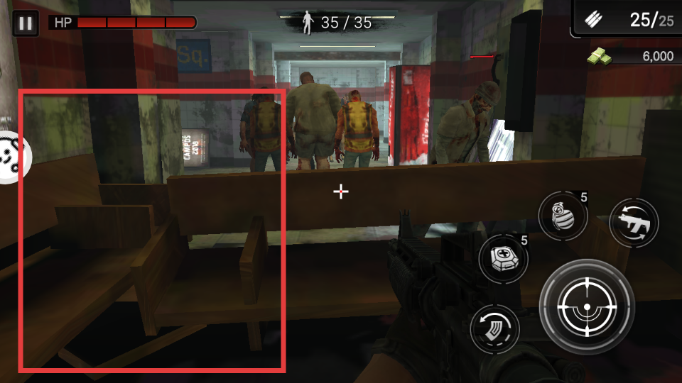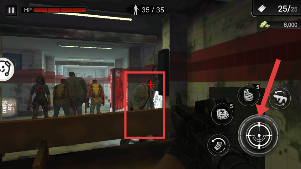 2. 踏入关卡后,在红框范围内滑动来瞄准僵尸。