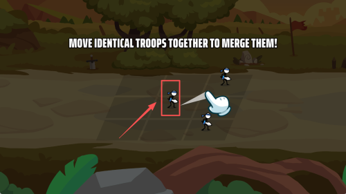 3、若出现移动相同部队合并的提示,依据红色箭头,将被框住的士兵拖拽至其他相同士兵附近,同时留意白色文字说明。
