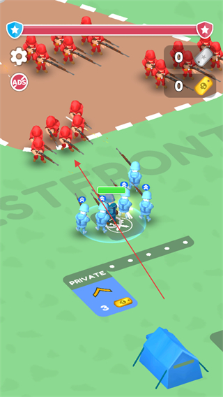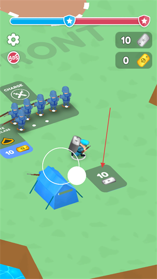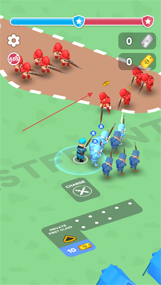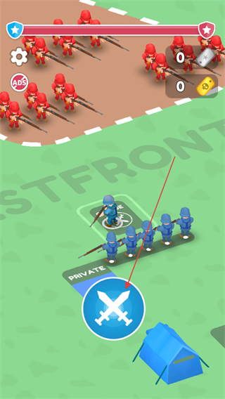 1. 轻点交叉剑图标,指挥蓝色士兵队伍朝着红色敌人展开进攻。