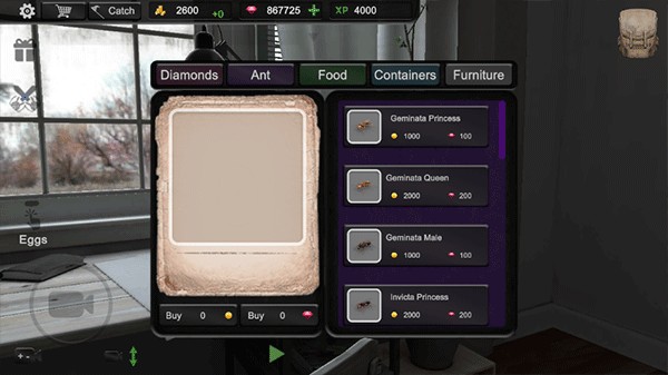 2、起初仅有一只蚁后,于后院之中从零起步,逐步壮大自身的队伍。
