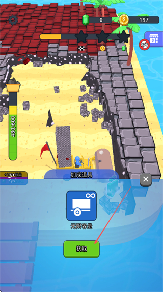 4、积累金币可解锁加成道具如无限容量,提升挖掘效率,完成关卡目标,不断扩大挖掘区域。