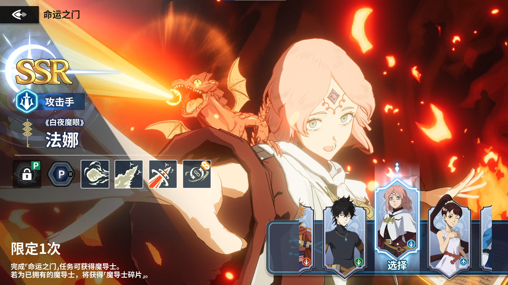 在命运之门里,能够从指定范围里自行挑选1名钟爱的SSR魔导士,作为目标奖励。