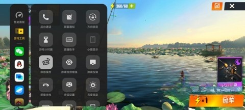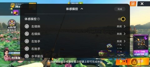 4. 启动游戏,点击“去钓鱼”,滑动游戏界面并开启游戏工具,选择“体感操控”;
