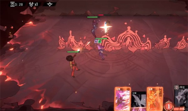 在战斗过程中,游戏会随机刷出英雄的技能卡牌,玩家耗费随时间慢慢积累的一定点数就能释放。此外,英雄拥有一个单独计算冷却时间(CD)的大招。这表明,玩家于战斗期间仅能进行两件事:释放技能卡牌以及大招。