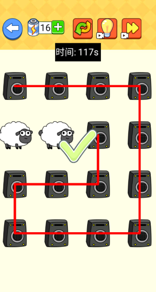 3、到了第三关,启用了新角色。仔细观察一会儿,就能发现连线的规律,注意要保持一笔画完成。