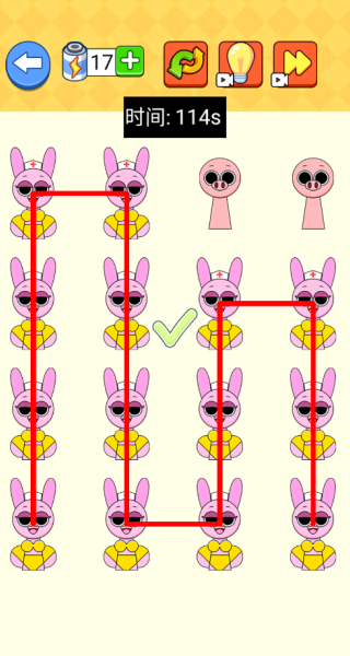 2、在第二关中,仅连接浅色兔子,深色兔子无需理会,画线过程中注意避开它们。