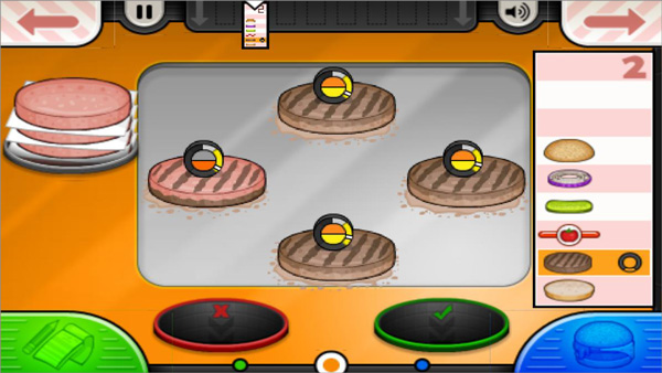 1. 烤肉饼技巧。肉饼烤制时间在规定区间内皆可,并非要精准达到中间刻度。为节省时间,建议刚达到客户要求的熟度就起锅,紧接着制作汉堡,以便能在肉饼热度最高时呈给客人。每次制作汉堡,都要按照提示操作,把控好火候,做出最美味的汉堡。玩家需及时完成超60个订单,每个订单需求各异,必须快速制作。