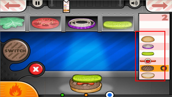 4、学习制作各类食物的方法,牢记食材的种类与添加顺序,打造出更加美味的汉堡。