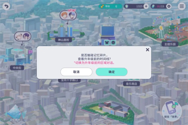 (1)在地图上,人物对话剧情会随机出现,若显示“New”,看完后(可选择跳过)能领取10水晶。把地图上的所有对话都点击一遍,接着在右上角选择“标题”按钮回到标题页面,之后再次进入游戏,对话就能刷新。另外,升级区域道具等级、进入演唱会或者打歌,也能起到相同的效果。在地图左下角设有“记忆碎片”功能,点击它可以查看三周年更新之前的人物对话。