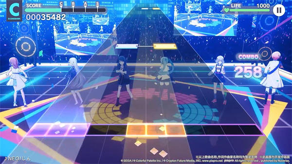 2、该游戏采用下落式玩法,长条形的音符与游戏画面风格颇为一致。这种设计在一定程度上降低了玩家的上手难度,减少了因音符过小导致误触的几率,让玩家能够更轻松地把握音乐节奏。