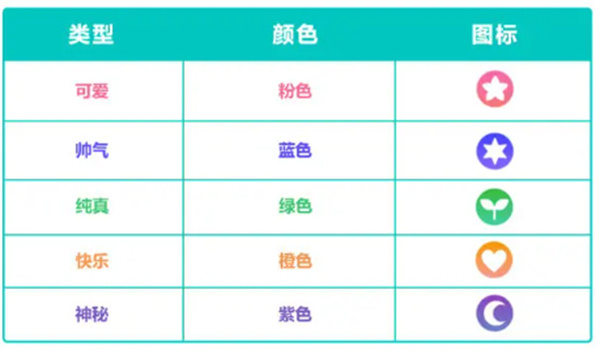 5、每位成员都会被赋予如下表所示的5种类型之一,类型图标会呈现在成员完整图的右上角,或者缩略图的左上角。当玩家等级升至25级后,能够在现实世界中的神山高校与宫益坂女子学园,使用奇异种子兑换具备相应类型加成的区域道具,该区域道具可提升拥有对应类型成员的综合能力。