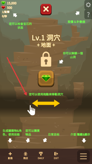 2. 进入之后,能够通过拖拽的方式移动洞穴,借此查看不同区域。与此同时,还可以查看宝石的状态,从而了解挖掘的相关情况。