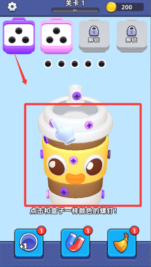 1. 进入关卡后,首先要仔细留意钉子的排列顺序,从中找出最易于松动的目标,接着依照提示循序渐进地拧下,防止因强行操作而致使失败。