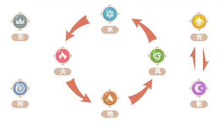 若存在属性克制情况,进攻方所造成的元素伤害将提升100%;若不存在属性克制,进攻方的元素伤害则会降低50%。